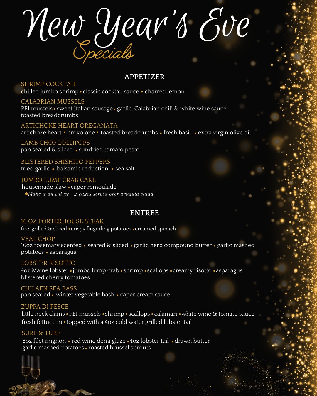 Join us for New Year’s Eve with no set price per person and no mandatory seating times. Enjoy all of our chef’s card specials alongside our full regular menu, and make a reservation that fits your schedule. Come early, come late, stay awhile — whatever works best for you.